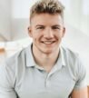 A modern digital display board features phrases promoting sustainability, future cities, and innovation. It emits a green glow against a dark background, while palm fronds partially frame the view.